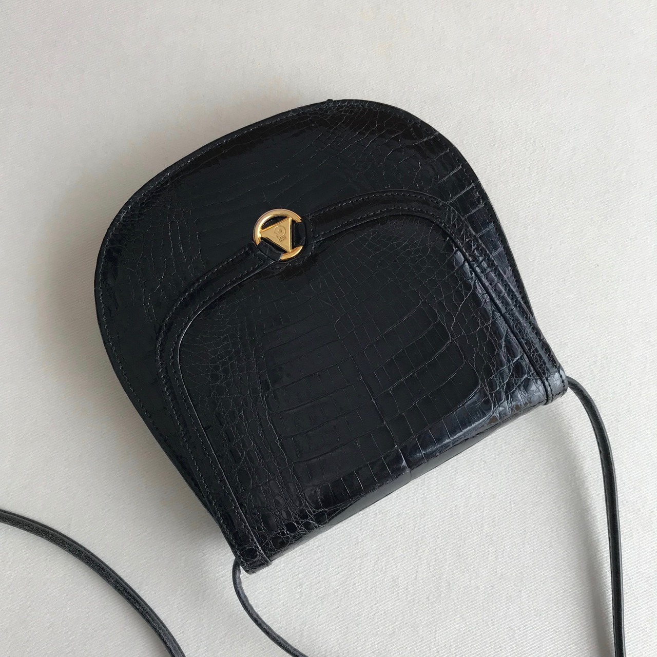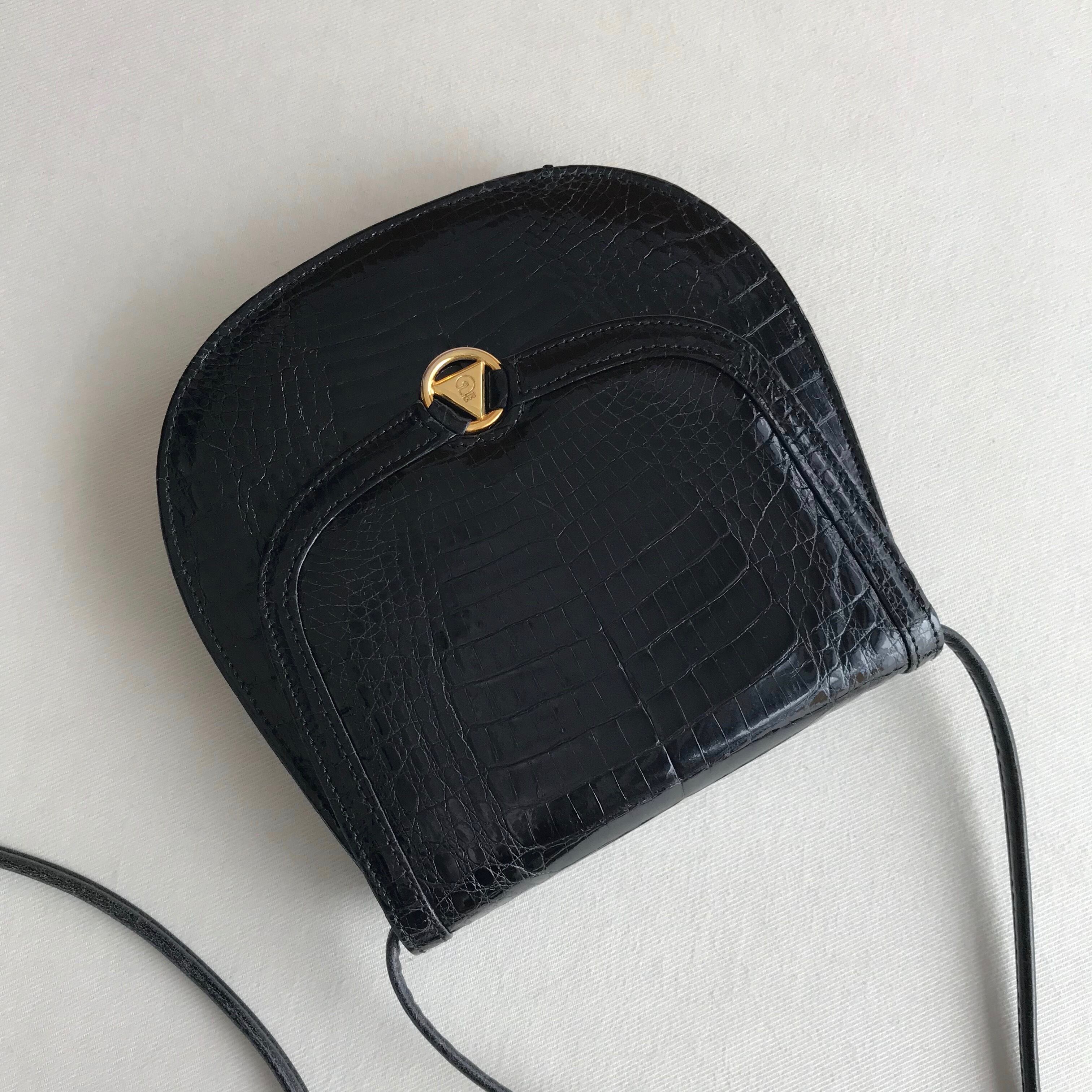 ☆ 90s vintage ☆ made in germany ☆ COMTESSE ☆ クロコダイル ☆ とても小さなポシェット ☆ 黒 ☆ ブラック ☆