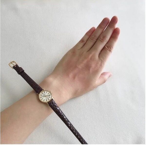 柔らかいゴールド味のある文字盤とゴールドのケースの組み合わせがとても優しい印象です◎