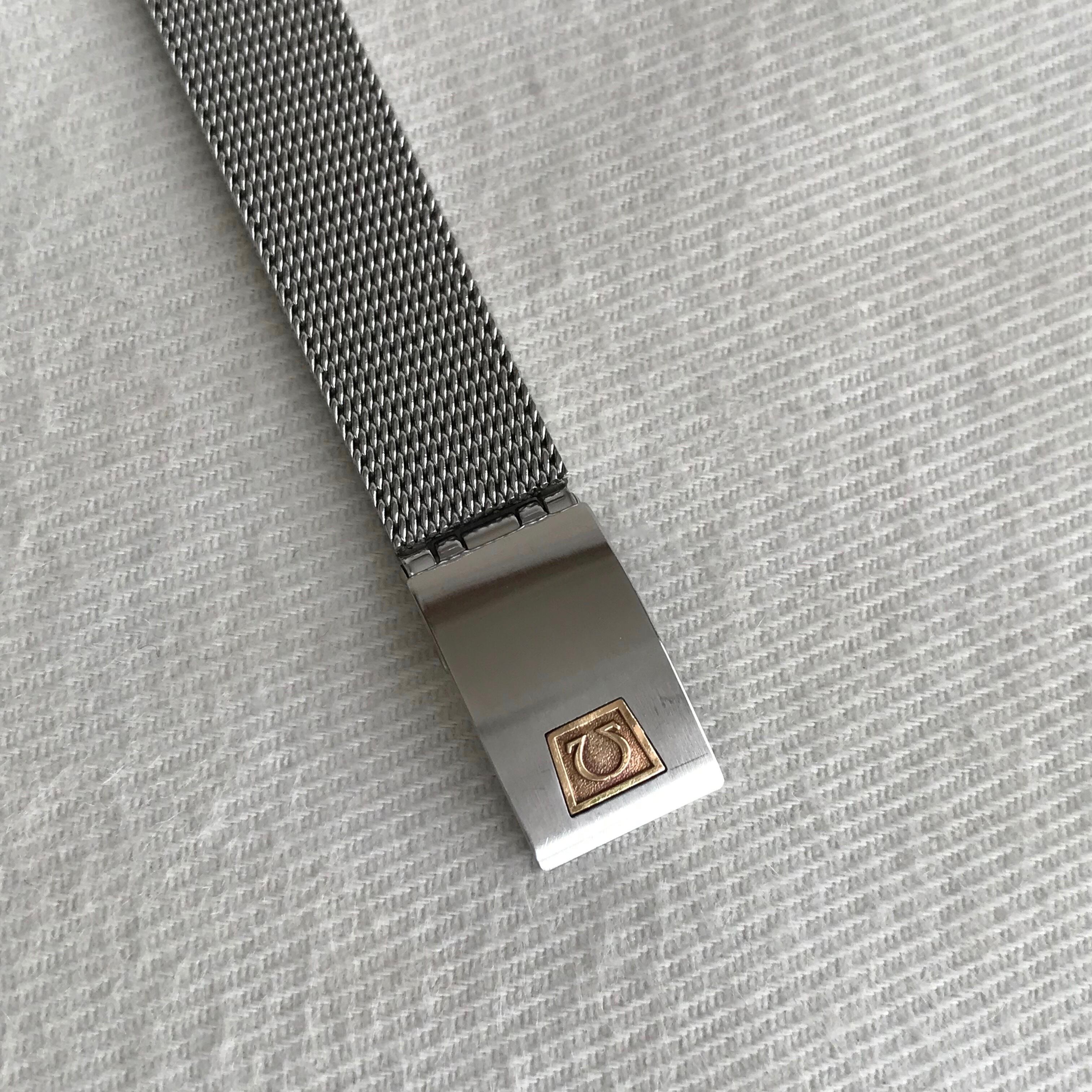 留め具のΩマークは金メッキの部品が使われていて、良いアクセントになっています。