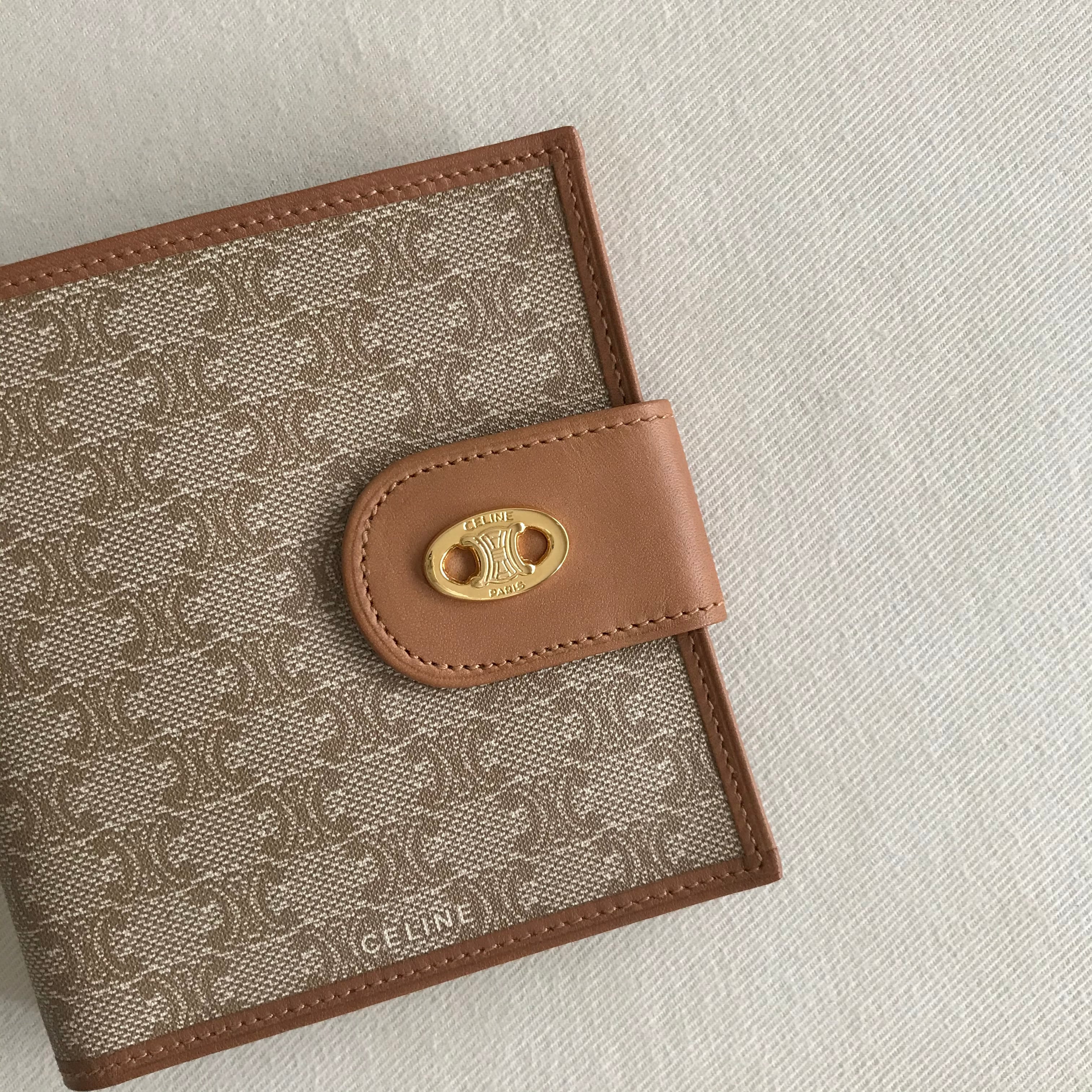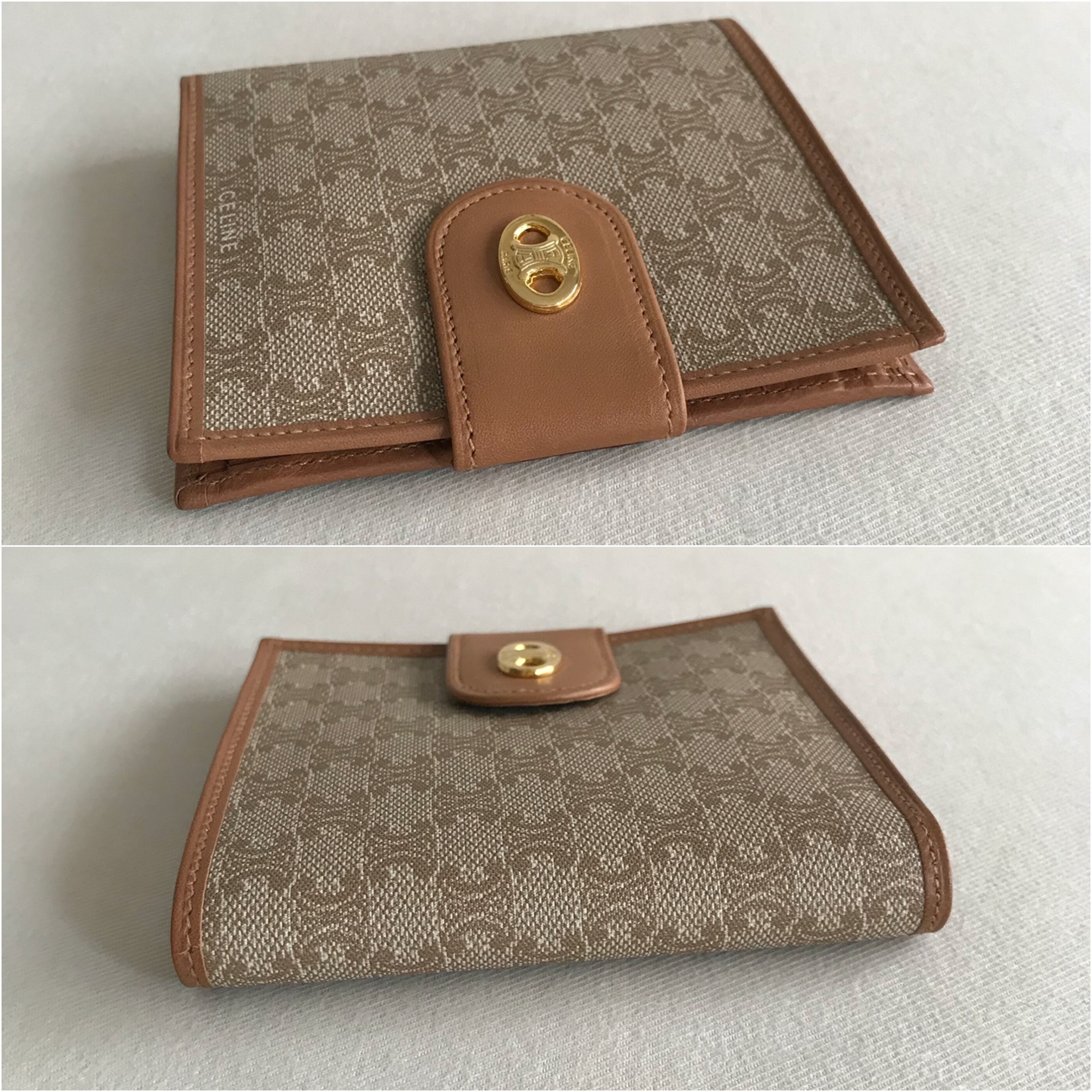 ☆ CELINE ☆ Vintage 80s ☆ マカダム ベージュ ☆ オーバル トリオンフ 金具 ☆ 折財布 ☆ オールドセリーヌ ☆