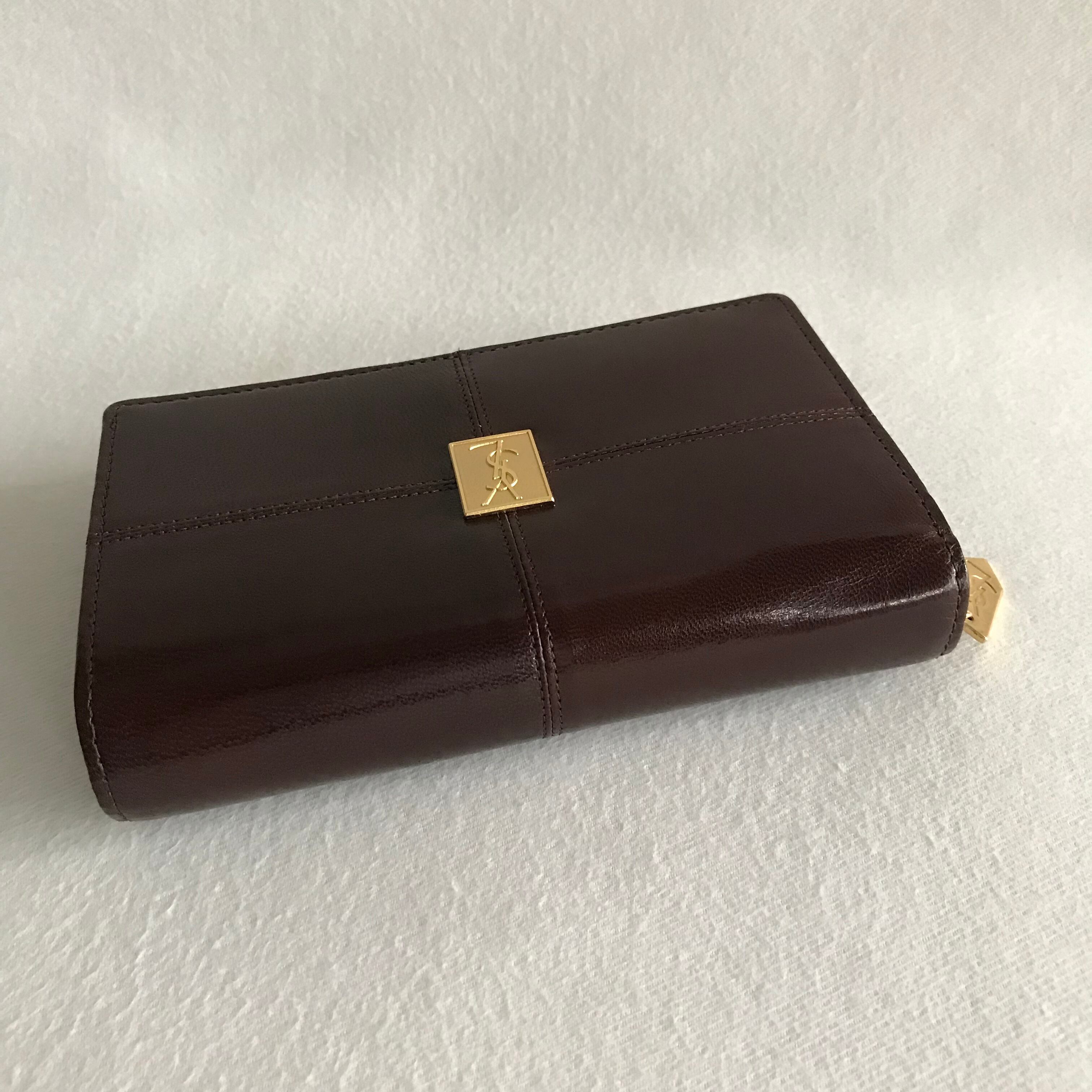 ☆ Yves Saint Laurent ☆ Vintage ☆ 90s ☆ ブラウン ゴートスキン 山羊革 ☆ 折り財布 ☆ ファスナーコインケース ☆ 未使用 ☆ | starlight-fukuoka